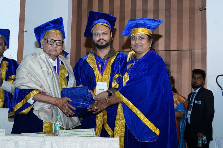 The ceremony was graced by esteemed personalities from Academia and Industry, who added grandeur and significance to the occasion. The President Prof B Lavanya, Dean-UGC Affairs, Osmania University conferred the Degrees to the MBA and MCA students of the institution and awarded Gold Medals to the meritorious students of the MBA and MCA Programs and the Overall Toppers. The Chief Guest, Professor Kumar Suresh, Dean- Academic and Research at the National Institute of Education Planning and Administration (NIEPA) brought valuable insights into academic excellence and the importance of research. Adding to the intellectual ambiance, the Distinguished Guest Dr Sridhar Guda, Professor in Marketing from the Indian Institute of Management, Kozhikode, offered thought-provoking perspectives on the rapidly evolving fields of management and marketing. His inspiring address encouraged students to embrace innovation and pursue excellence in their academic and professional journeys. The Special Guest, Sri Tej Kumar Vangaveti, Director-Digital and Data Technologies at Novartis India, highlighted the critical role of technology and ongoing learning and opportunities in the AI environment. Merit certificates to the Top 10 Rankers of the MBA and MCA programs were awarded by the distinguished guests. The session highlighted the presence of Padma Sree Awardee and the Chairman of Pragna Bharati, Andhra Pradesh, Dr Tripuraneni Hanuman Chowdary, who made the event lively with his momentous address.