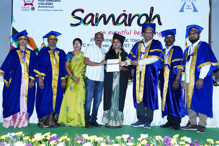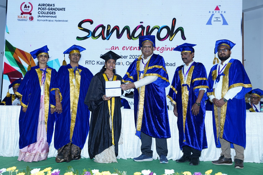 To honour the academic excellence and celebrate the accomplishments of the first autonomous batch 2023-25 of the institution, Aurora Ramanthapur organized ‘Samaroh’, a grand convocation ceremony, with the splendid congregation of academia, industry leaders, distinguished guests, proud parents, and faculty, on 25th October 2025 at RTC Kalabhavan, Baghlingampally.