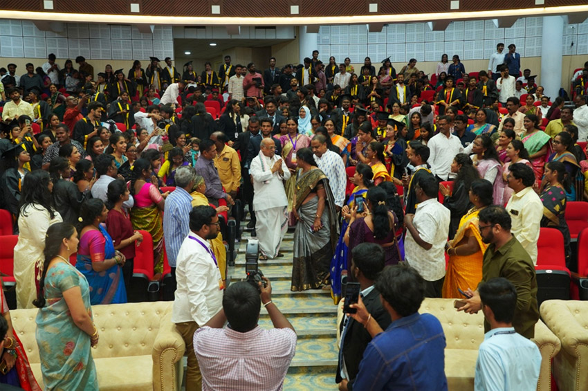 The Ceremony is organised in two sessions; the Morning session ‘Adhijanuvakam’; that honours the excellence and achievements of the meritorious students and the afternoon session ‘Abhijnanuvakam’ that awards the degrees to all the passed out students. The afternoon session also contains a spiritual address ‘Spoorthi Bhashanam’ by eminent spiritual orators, who advocate the philosophy of life to the graduating students while they embark on their journey of life.